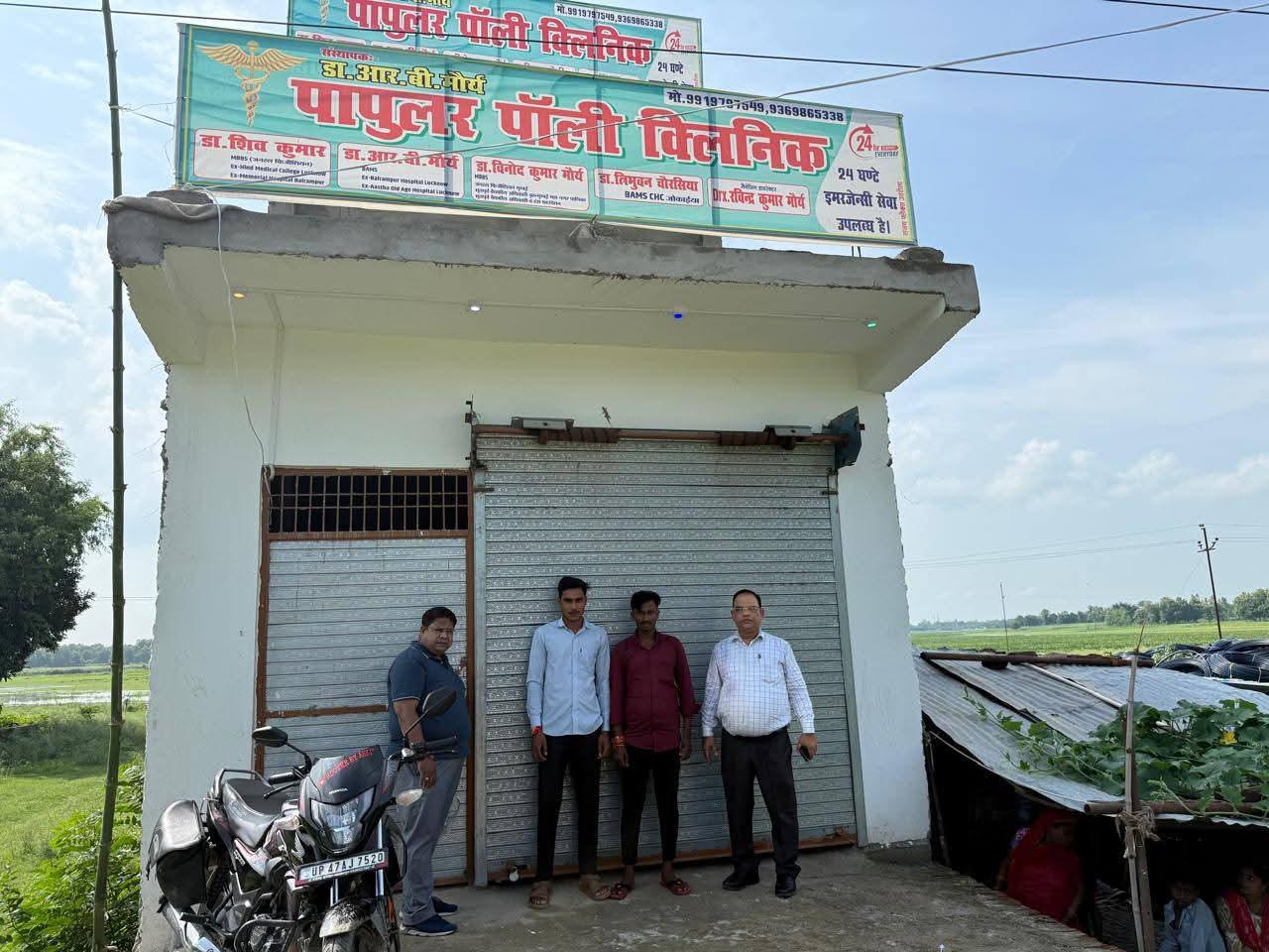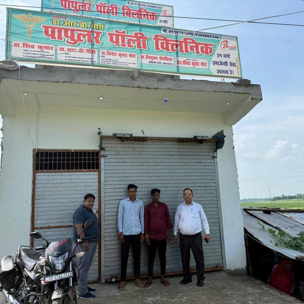 बलरामपुर। जिलाधिकारी एवं मुख्य चिकित्सा अधिकारी बलरामपुर के आदेश के क्रम में अपर मुख्य चिकित्साधिकारी संतोष कुमार श्रीवास्तव एवं राजेश हंस (निजी प्रतिष्ठान नोडल अधिकारी) व निरीक्षण टीम द्वारा अवैध क्लिनिक को 10 अगस्त 2025 को सील किया गया। सीलिंग के साथ विधिक कार्रवाई भी की जा रही है।